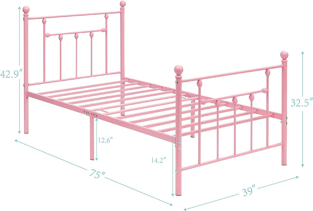 VECELO Twin Size Metal Platform Bed Frame for Girls Kids
