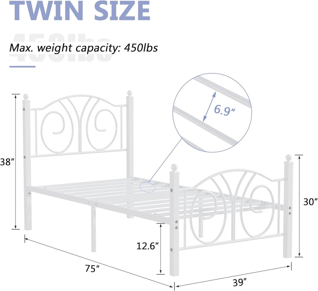 VECELO Twin Size Metal Platform Bed Frame with headboard and Footboard