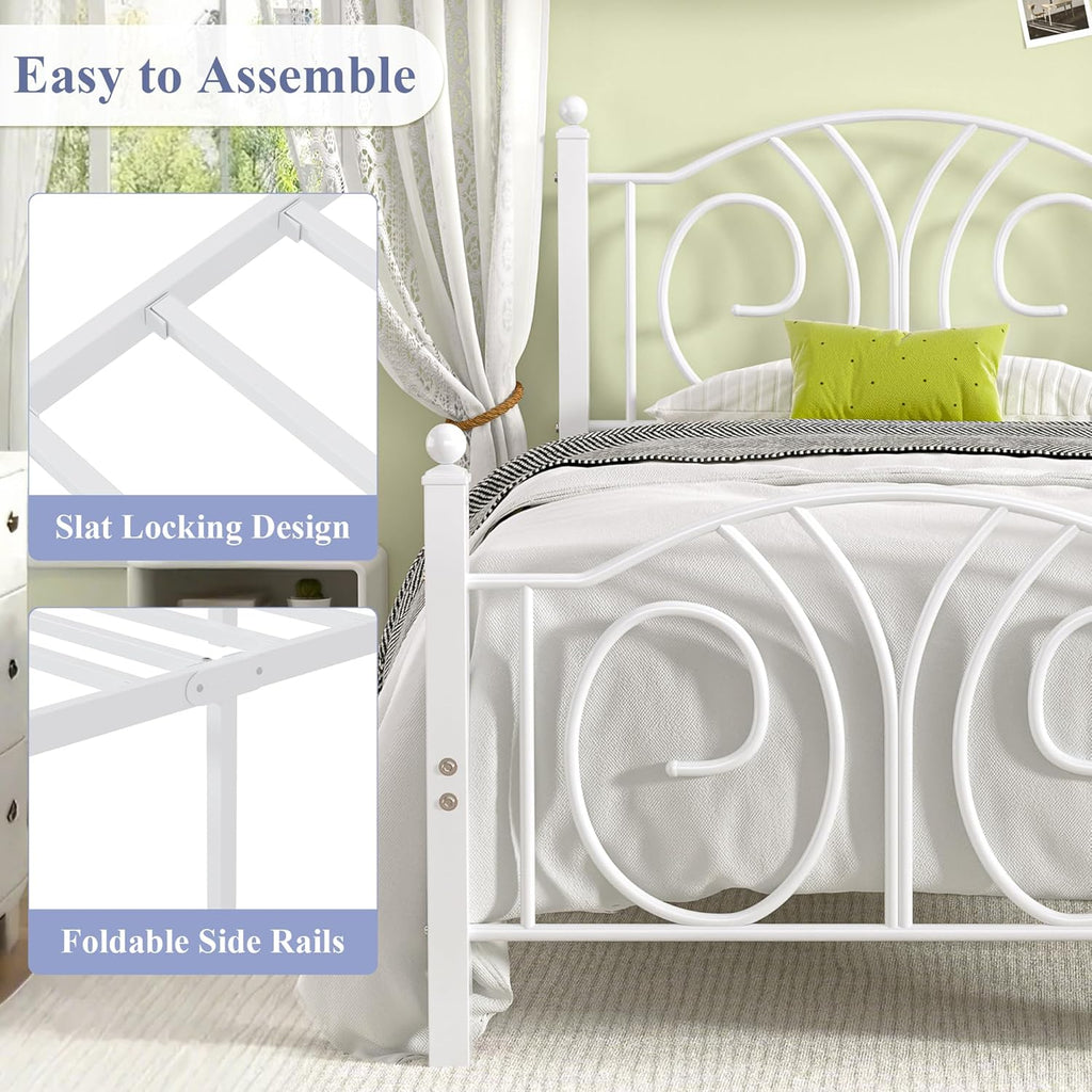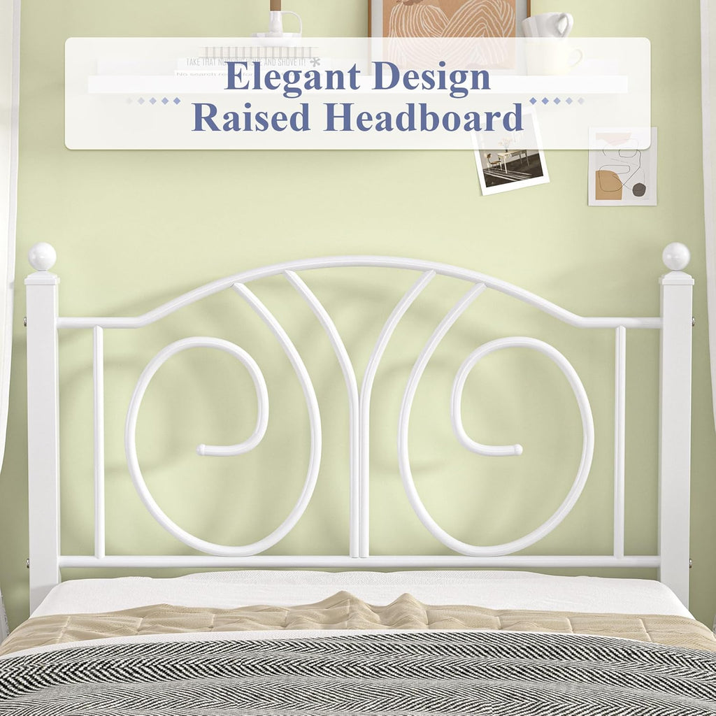 • Elevate Your Bedroom Decor - Features classic curved lines design and ball finial accents, this twin size bed frame with headboard blends romantic aesthetics with modern flair, making it suitable for any styled bedroom.