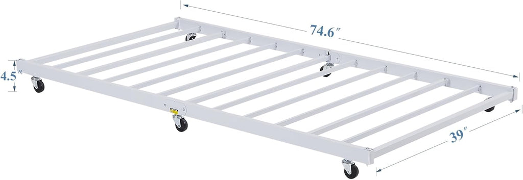 • Twin size trundle bed dimensions: 70.9"L x 39.2"W x 4. 9"H (L x W x H). Designed to fit one twin size trundle bed frame mattress (Sold separately).