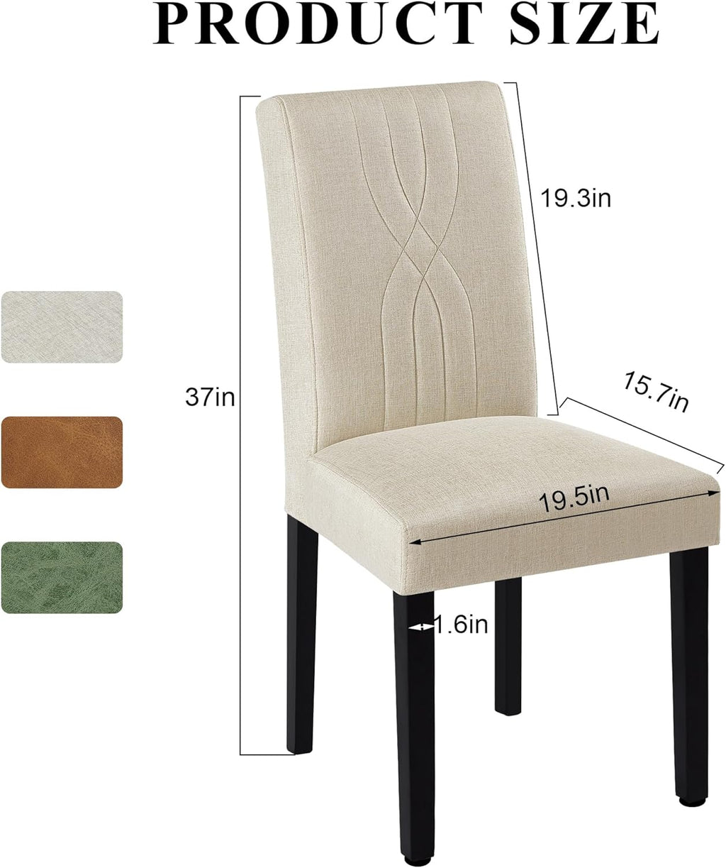• [Durable Linen Fabric Kitchen Chairs]: The wood kitchen dining chairs are designed with heavy-duty solid wood legs for optimum support to guarantee solidity and durability, that can hold up to 260 lbs. Non-slip foot pads of the dinning chair protect the floor from being scratched.Dining chairs are upholstered with soft linen fabric, which is breathable and easy to clean.