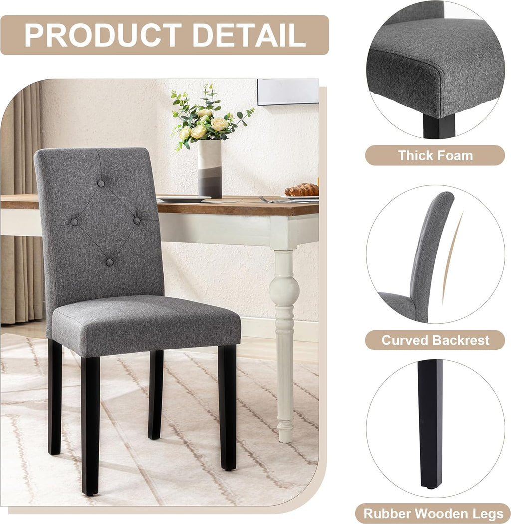 • [Durable Linen Fabric Kitchen Chairs]: The wood kitchen dining chairs are designed with heavy-duty solid wood legs for optimum support to guarantee solidity and durability, that can hold up to 260 lbs. Non-slip foot pads of the dinning chair protect the floor from being scratched.Dining chairs are upholstered with soft linen fabric, which is breathable and easy to clean