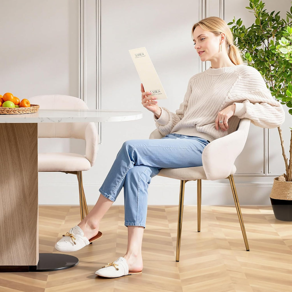 • 【Premium Quality & Durability】Crafted from wear-resistant, scratch-resistant velvet fabric, our velvet dining chairs offer easy maintenance and a skin-friendly touch for a luxurious dining experience. Matching foot pads ensure that the floor is not worn out.The sturdy metal legs provide robust support, with a maximum weight capacity of 300 lbs, ensuring long-lasting durability for everyday use.